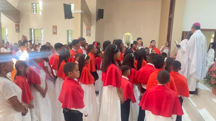 La eucaristía, celebrada en nuestra parroquia local, reunió a decenas de feligreses, autoridades y miembros de la comunidad, y niños que realizaron su confirmación quienes compartieron en un ambiente de fe, unidad y esperanza.